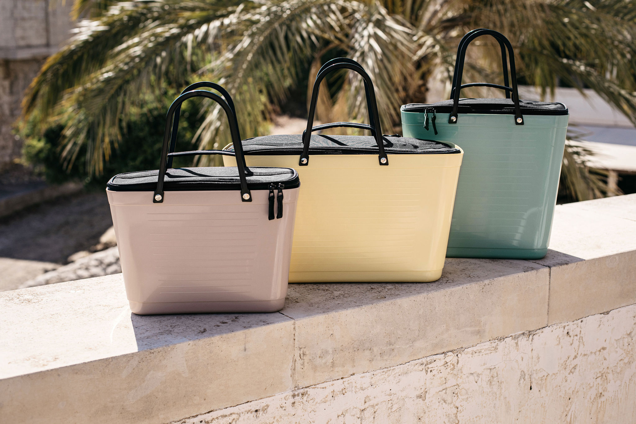 Väskorna är i plast och tillverkas i Sverige. Upptäck vårt Green Plastic-sortiment tillverkat av biobaserad plast och Recycled Plastic-väskorna gjorda av återvunnet material.