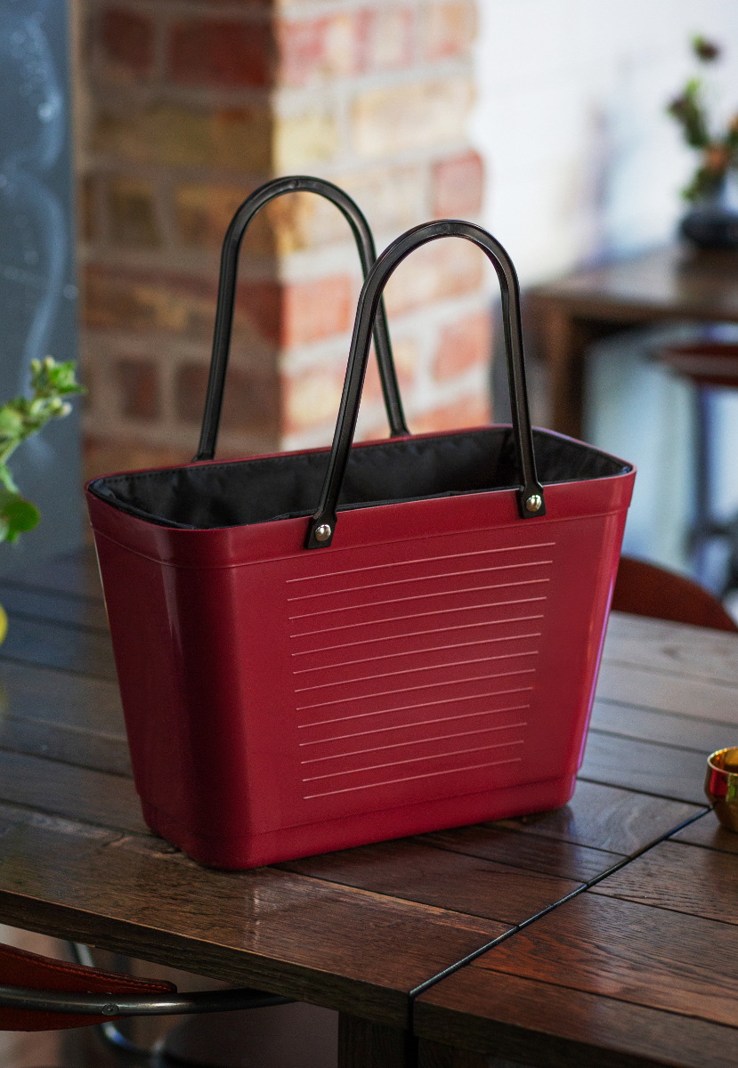 Den mindre Hinzaväskan överraskar med sin stora funktionalitet. Den är perfekt som handväska, picknickkorg och till smart förvaring i hemmet och på arbetsplatsen. Väskan är tålig, står stadigt och är lätt att hålla ren.